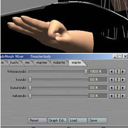 →モーフマップを作ったからにはモーフミキサーでいろんな指の表情が作れるぞ、とはりきってレイアウトにいきました。