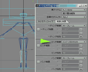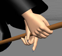 LairaはWoodmanの左手に「その場でペアレント」してますので、うでを回転するとそのままついてきます。(Woodmanを万歳させるととんでもないことになります(^^;)