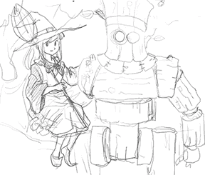 くれにPainterで絵のほうは仕上げていました。つえだけLWでつくってレンダリングし、PhotoShopで合成しています。