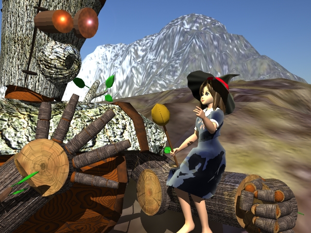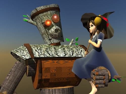 一応、レイラの形ができたので、木男を読み込んで絵を作ってみました。
