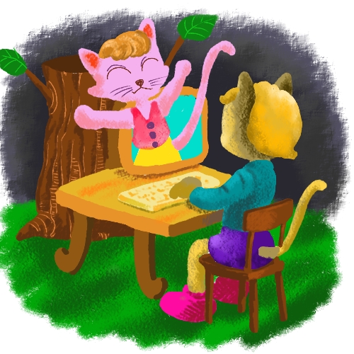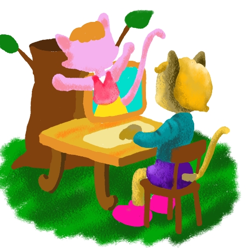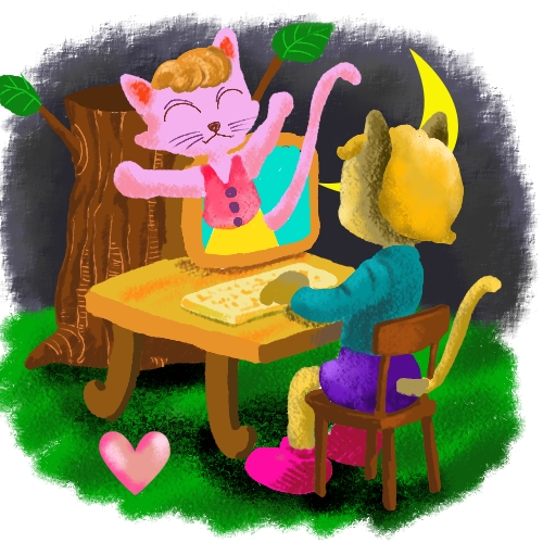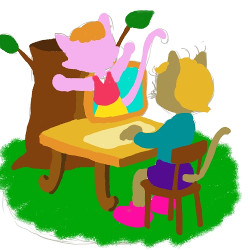 Cat-net メルマガ「「ビジネスマンでも5分でかけるグラフィックデザイン」で連載したものです。 秋の夜長にチャットする猫の絵 ほとんどチョークで・・