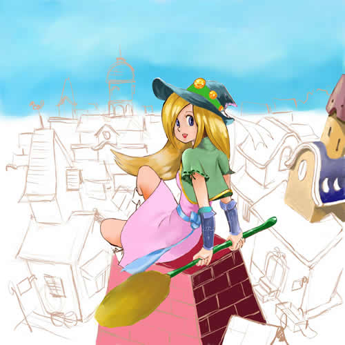 そして、Painterの中で一番好きな筆「グアッシュ」を使って線をよけながら少しずつ色を付けていきます。