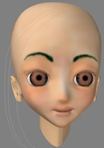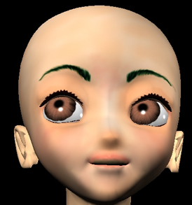 あとは、眉毛もテクスチャでかいてますが、これも形状にしようと思ってます。眉毛を形状で作ると、表情が眉毛の形状変化で容易につくれるからです。